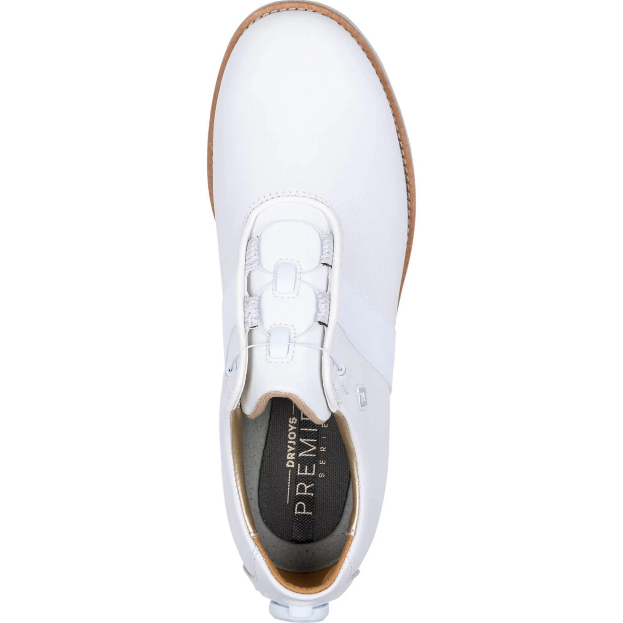 Der FootJoy Premiere Series BOA Damen Golfschuh überzeugt mit seinem klassischen Design und revolutionärer Technologie. Das Obermaterial ist aus hochwertigem, weichem Vollnarbenleder mit Details aus luxuriösem Kalbsleder. Innen findet sich ein Futter aus weichem Schaffell.