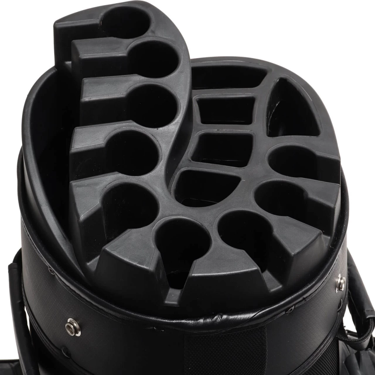 Das JuCad Manager Dry Cartbag besteht aus 100% wasserdichtem Nylon-Gewebe. Die teilweise durchgehende 14-fache Schlägereinteilung mit fester Schlägerkopfführung ermöglicht Ihnen ein übersichtliches Schlägermanagement und verhindert ein Klappern der Schläger.
